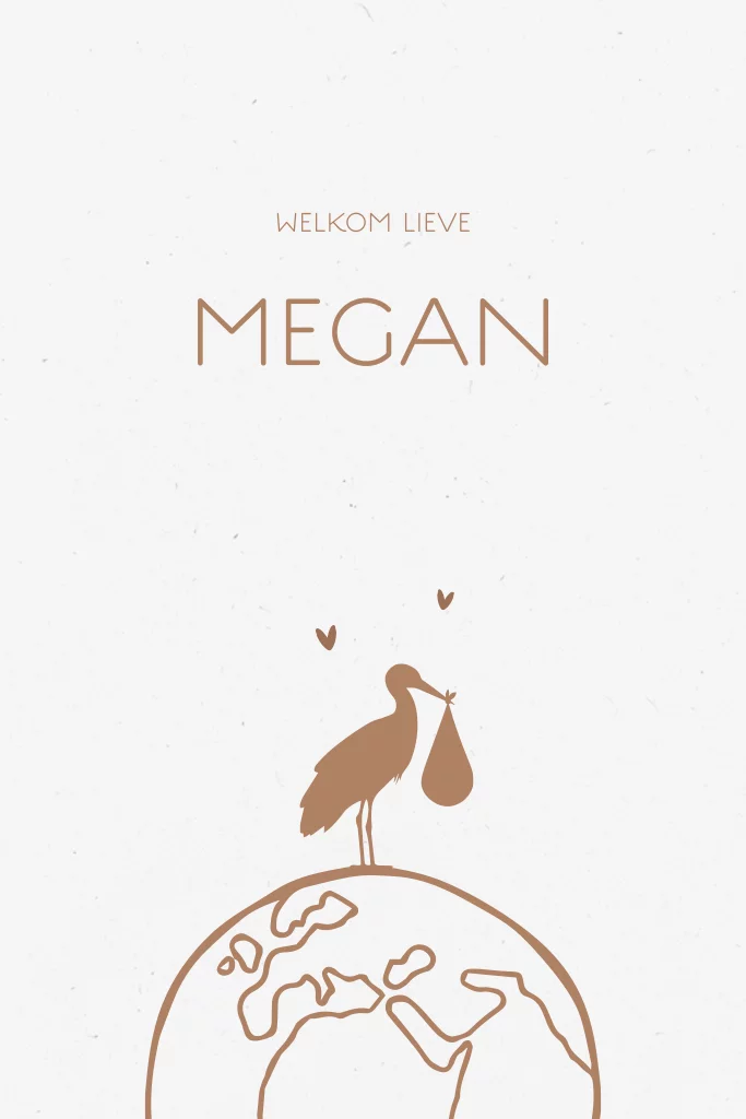 Eco geboortekaartje meisje met ooievaar op wereldbol