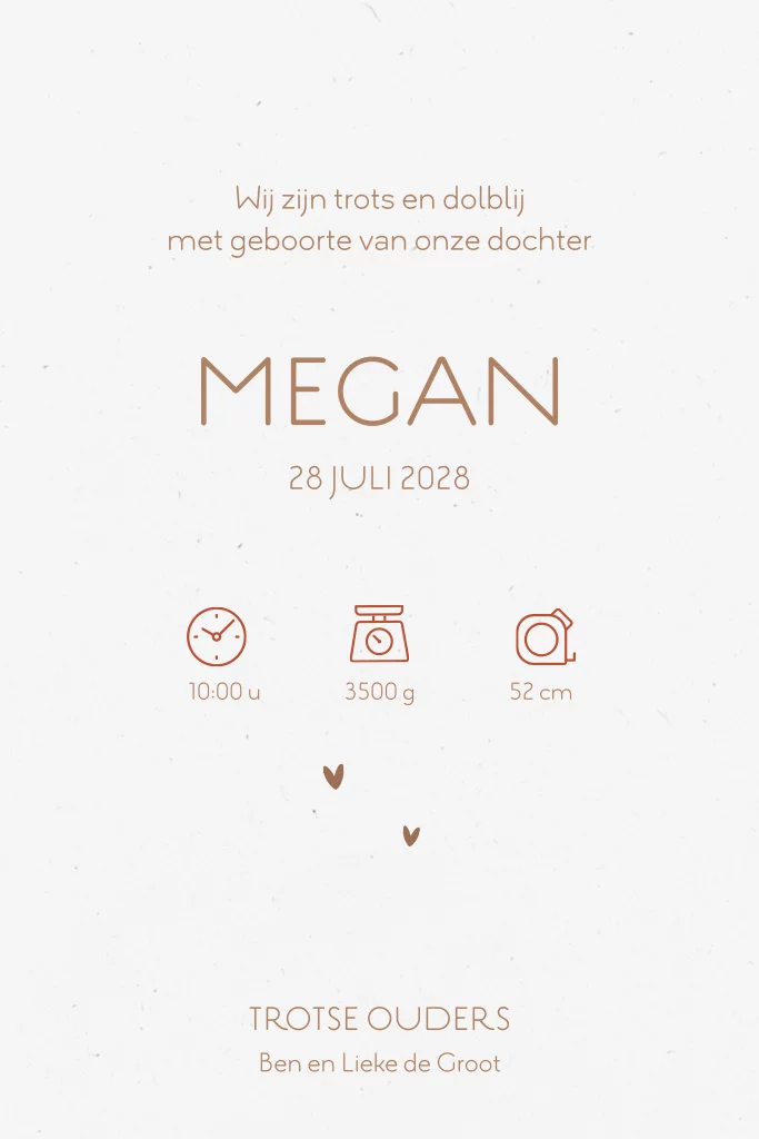 Dit geboortekaartje wordt gedrukt op eco papier, met keuze uit twee soorten. In dit voorbeeld tonen we ons standaard eco papier circle. Bestel eerst een drukproef om het resultaat te beoordelen.