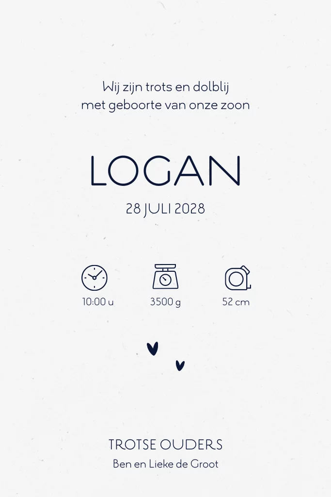 Dit geboortekaartje wordt gedrukt op eco papier, met keuze uit twee soorten. In dit voorbeeld tonen we ons standaard eco papier circle. Bestel eerst een drukproef om het resultaat te beoordelen.