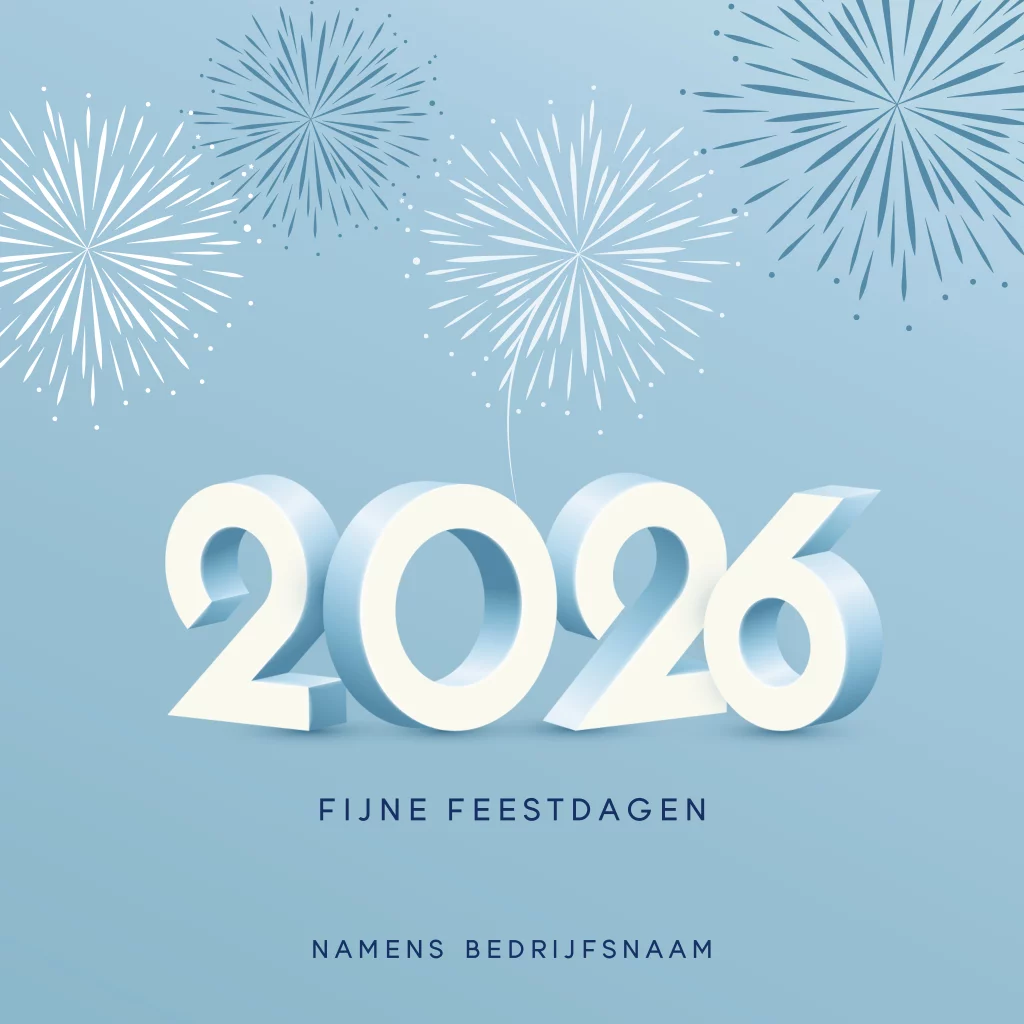 Duurzame kerstkaart met 2026 in 3D en vuurwerk