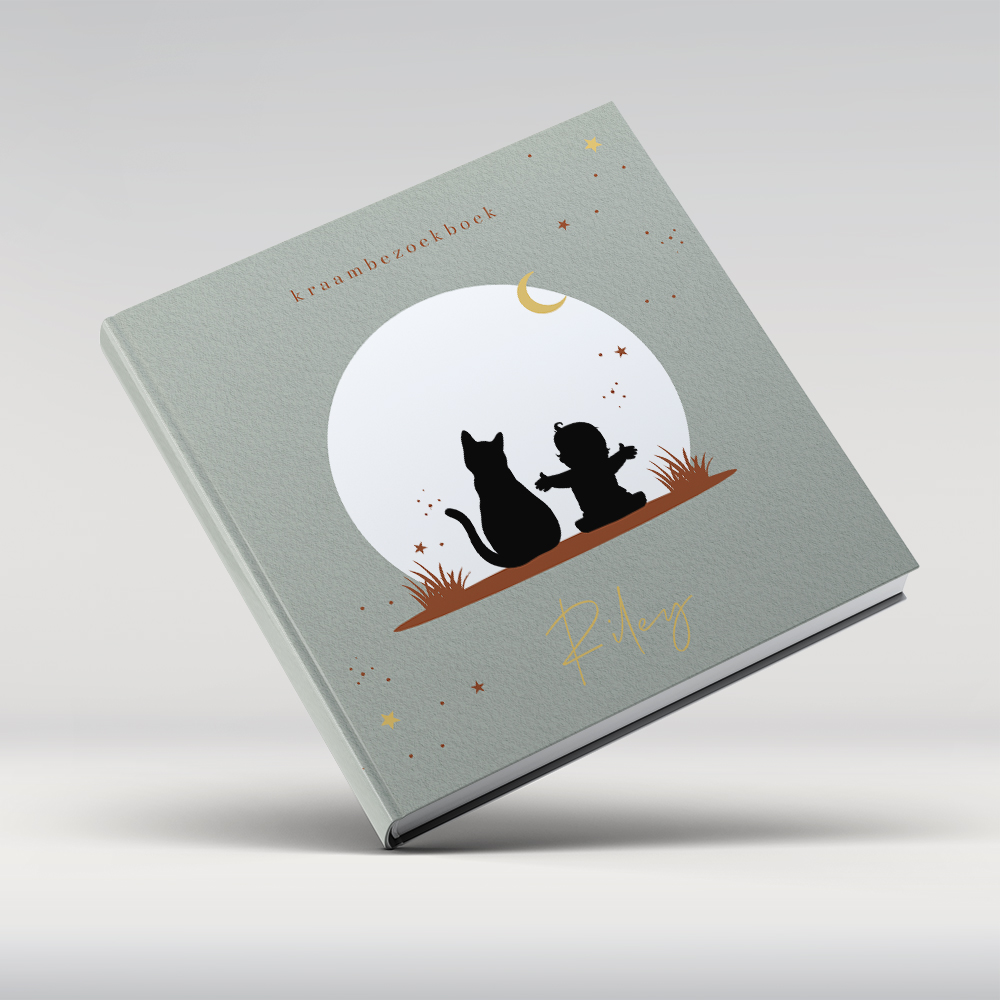 Groen kraambezoekboek met silhouet baby en kat