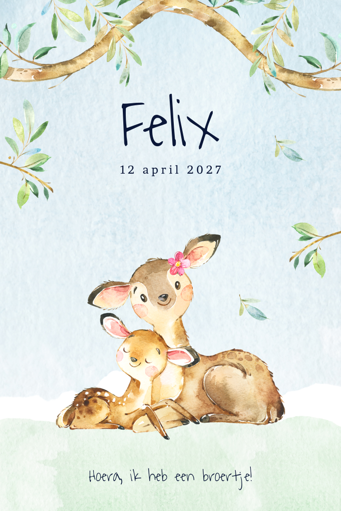 Geboortekaartje jongen voor een 2e kindje met twee herten in het bos