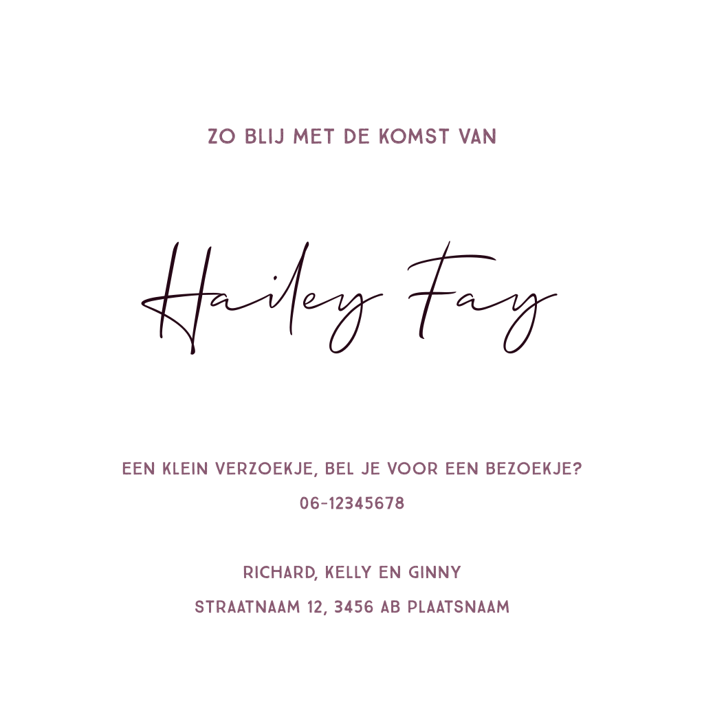 Lila en zalm geboortekaartje silhouet met zusjes in bootje