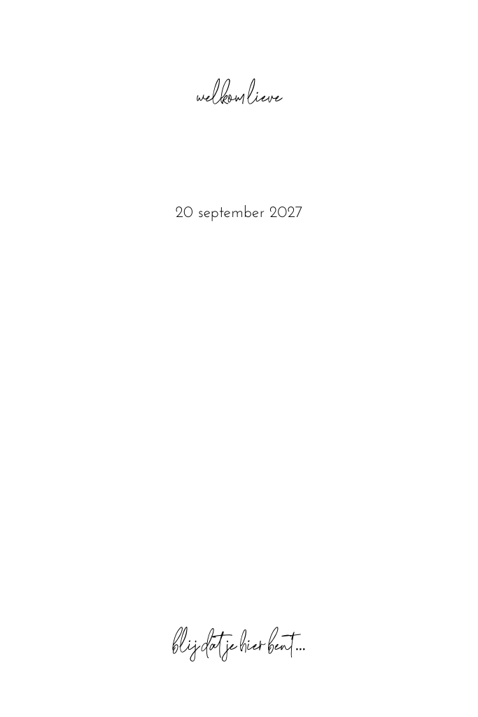 Wit geboortekaartje op staand, enkel formaat. De achtergrond matcht mooi met het roségoudfolie. Met dik gedrukte letters staat de naam van je dochter groot bovenaan de kaart. Op de voorkant zie je een lijntekening van een grote broer met zijn zusje in zijn armen. Op de achterzijde kun je onder de icoontjes de geboortegegevens kwijt.