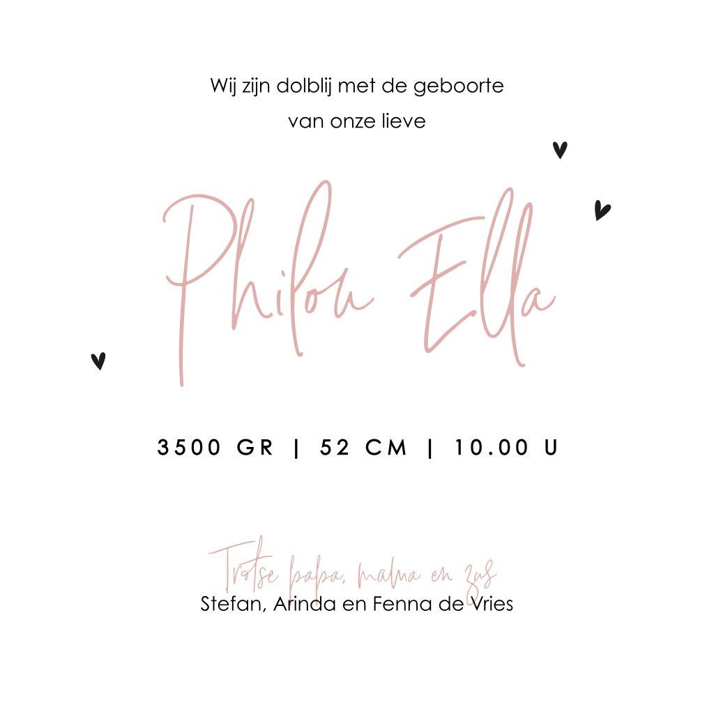 Is er een zusje op komst? Wat leuk! Op dit roze geboortekaartje staat een trotse grote zus met een kinderwagentje met een baby erin. Aan de binnenzijde komen de twee zusjes terug en is er ruimte voor een lief gedichtje. Pas dit kaartje naar wens aan door kleuren of lettertypes te wijzigen.