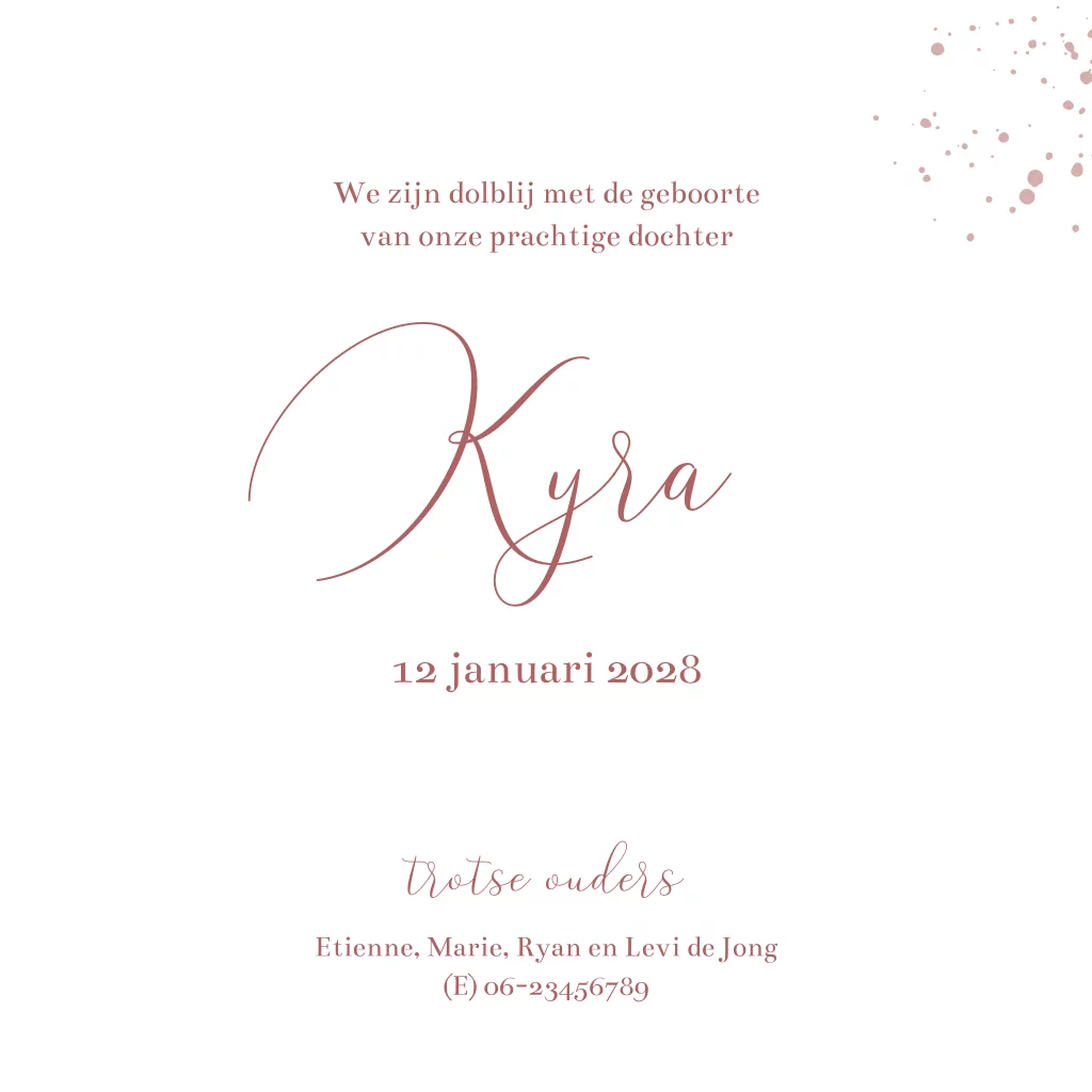 Lief ontwerp waarbij de oudere broertjes en zusjes ook een plekje krijgen. Verander de silhouetjes zelf met behulp van onze editor. Zoek de silhouetjes in de map 'Silhouet familie'. Klaar? Bestel een drukproef en wij sturen een gedrukt exemplaar naar je toe.
