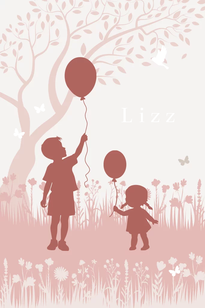 Vier de aankomst van je tweede kindje met dit betoverende geboortekaartje. Een schattig ontwerp in roze, waar een grote broer en klein zusje een ballon vasthouden, omringd door bloemen, vlinders en een vogeltje. Perfect voor een klein zusje dat geboren wordt in de lente of zomer! De naam van je kleine, plus vlinders en vogel, worden in prachtig goudfolie gedrukt. Vrolijk, tijdloos en lief, kondig de komst van je tweede kindje aan met dit leuke geboortekaartje! Pas dit ontwerp zelf aan in onze editor en bestel een proefdruk.