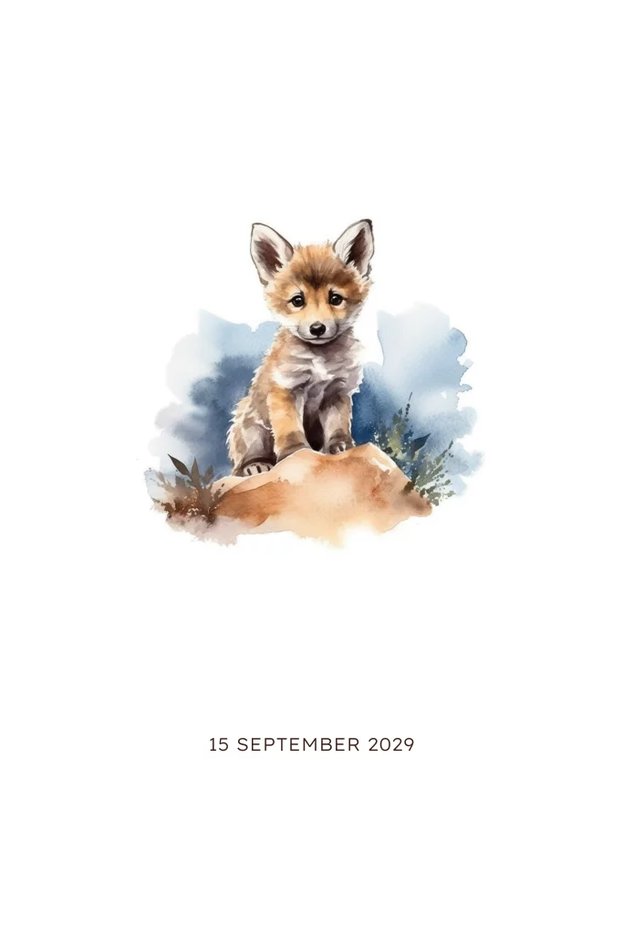 Wat een lief geboortekaartje met baby wolf geschilderd in waterverf. Dit geboortekaartje kan voor zowel een jongen als meisje en wordt daarom ook wel unisex genoemd. Met een mooi lettertypes staat de naam in blinkende goudfolie maar deze kun je ook aanpassen naar een andere kleur bijvoorbeeld roségoud of zilver.