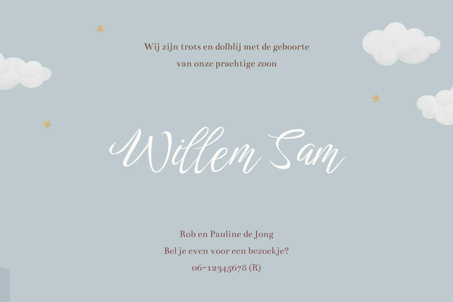 Wat een lief geboortekaartje, perfect om de komst van jullie zoon te vieren! Dit ontwerp toont een vrolijke olifant achter het stuur van een vintage vliegtuigje, compleet met feestelijke ballonnen erachter. Online kun je dit kaartje eenvoudig aanpassen met onze gebruiksvriendelijke editor, zodat het helemaal naar wens is. Bestel gerust een proefdruk om de kwaliteit in het echt te bewonderen.