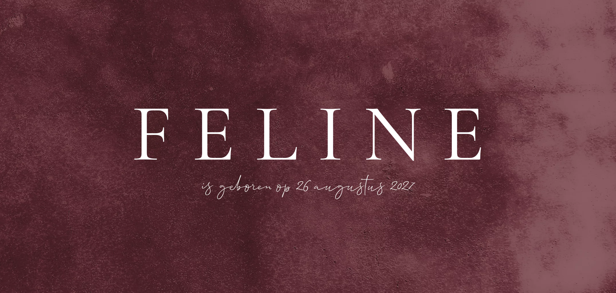 Een chic geboortekaartje voor jouw pasgeboren dochtertje. De voorkant heeft een mooie bordeaux rode achtergrond met een duidelijke textuur, dit geeft diepte aan dit verder eenvoudige kaartje. De roségouden naam in klassieke letters maakt dit geboortekaartje tot een trendy ontwerp. Op de achterzijde komt de bordeaux rode textuur terug en kun je onder de geboorte-icoontjes de gegevens van je dochtertje plaatsen. Liever andere kleuren? Pas dit zelf aan in onze ontwerptool.
