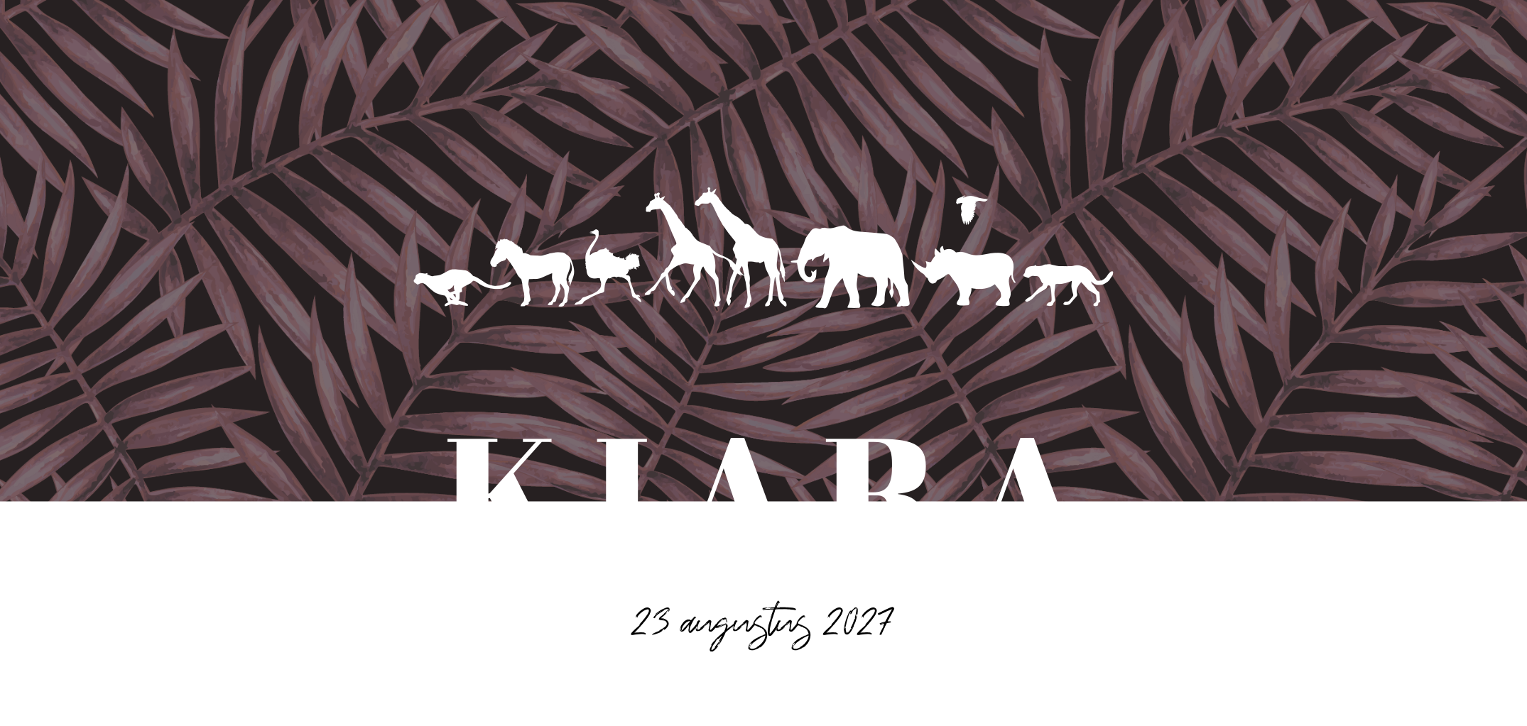 Jungle geboortekaartje met gouden naam en wilde dieren. Dit stoere geboortekaartje is voor de komst van jouw kleine meid gedecoreerd met wilde beesten. Op de achtergrond zie je bladeren waardoor je een echte nature vibe creëert. Door de strakke letters met goudfolie is dit kaartje helemaal af. In de kaart is er ruimte voor een persoonlijk tekstje met alle geboortegegevens.