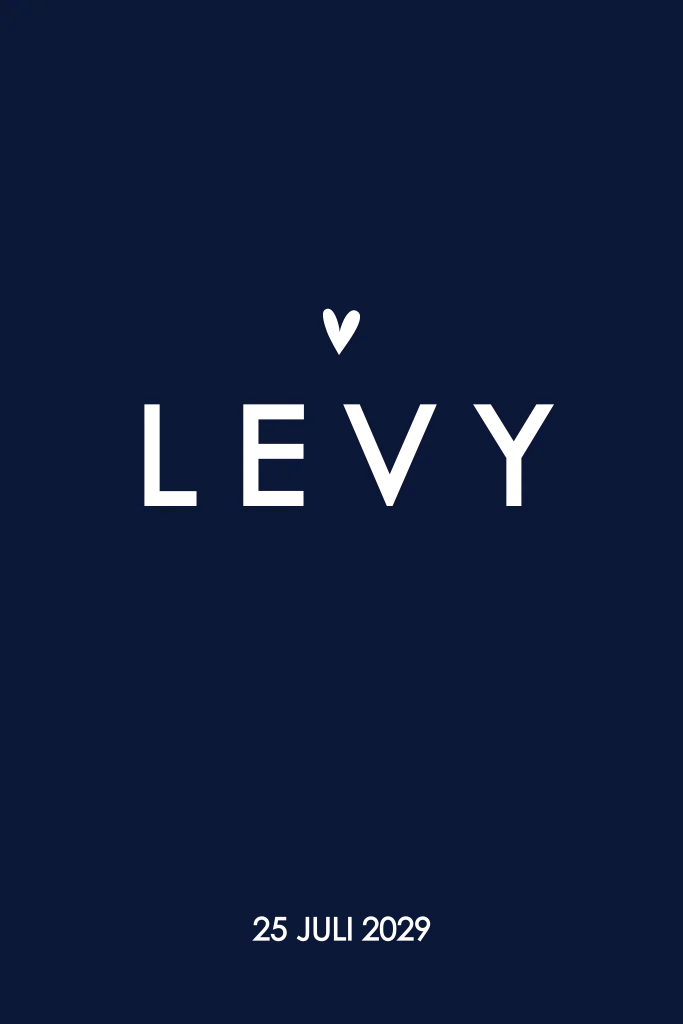 Clean donkerblauw geboortekaartje voor een zoon met hartje