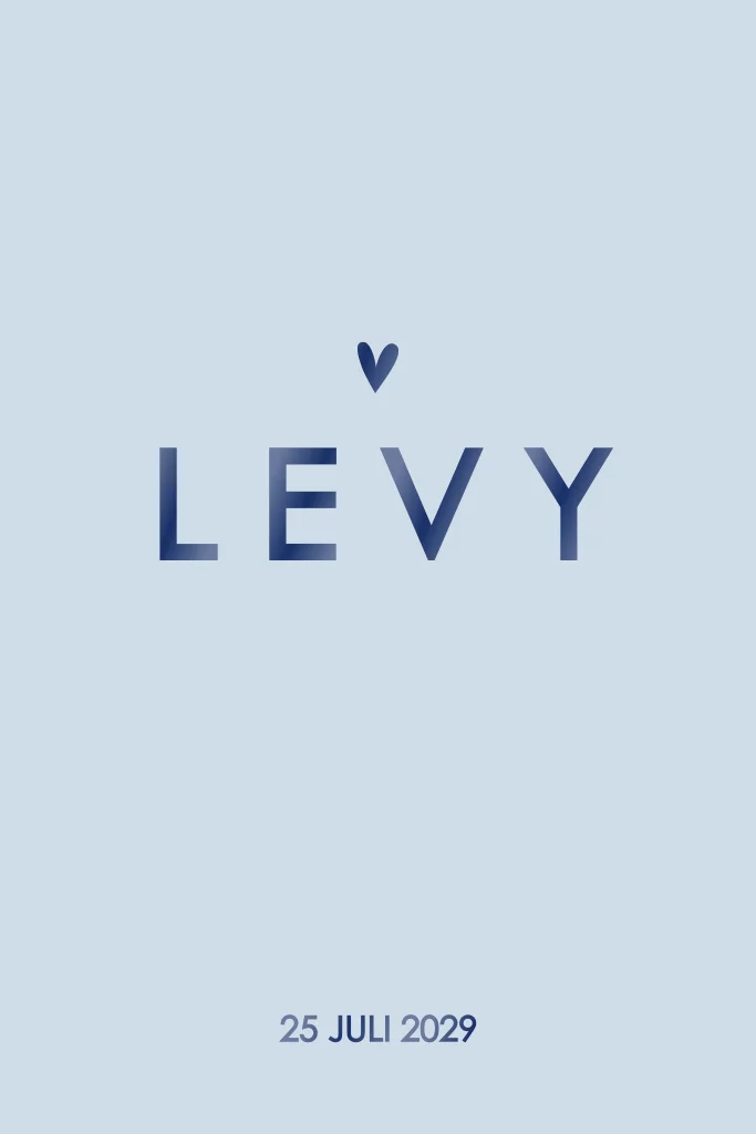 Hoera, er is een zoon op komst! Kies dit donkerblauwe geboortekaartje met hoogglans babynaam en hartje. Less is more! Dit ontwerp heeft niet meer nodig dan een blauwe achtergrond en hoogglans accenten. Pas en bestel een proefdruk.