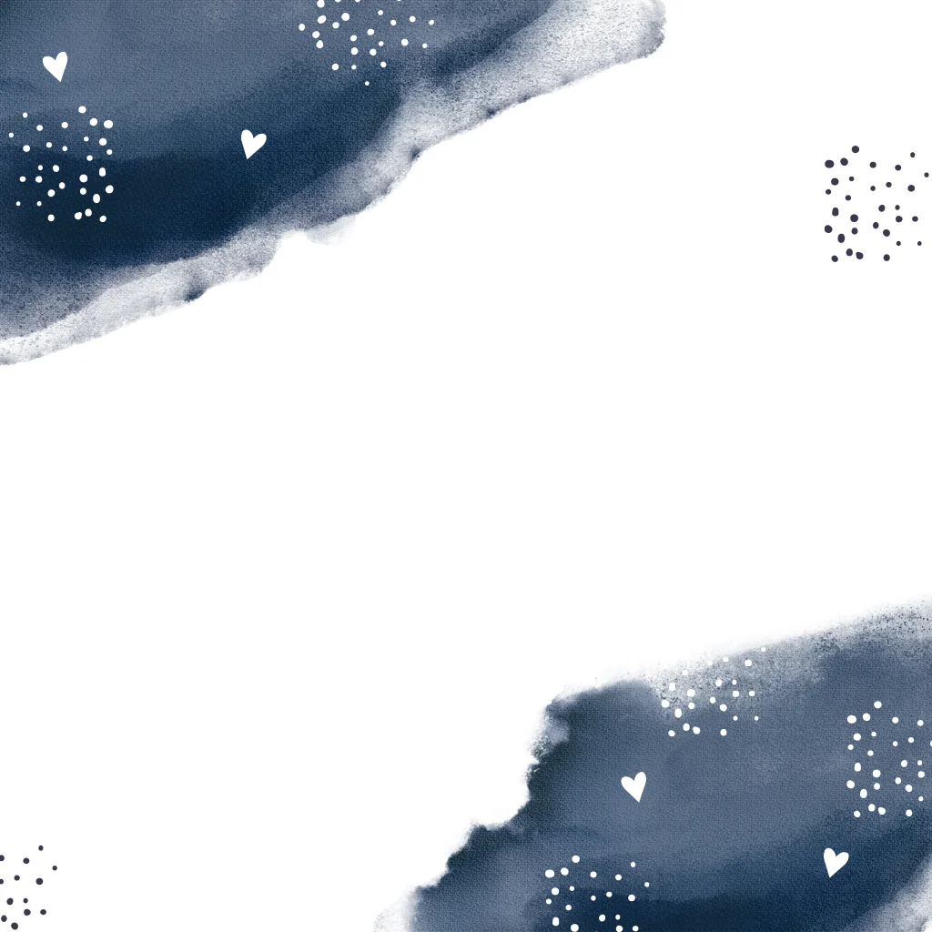 Geboortekaartje met blauwe waterverf en zilveren hartjes