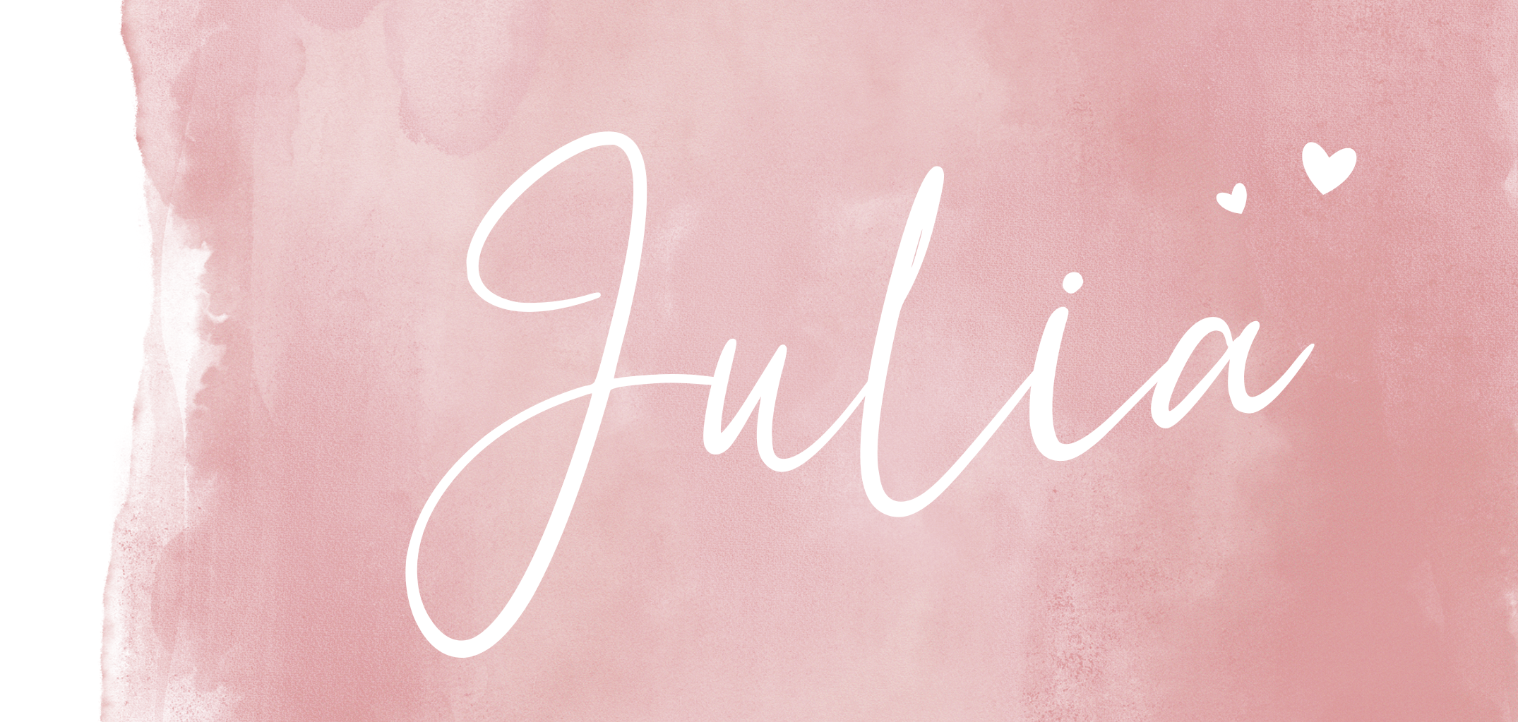 Roze waterverf geboortekaartje meisje met grote naam en hartjes