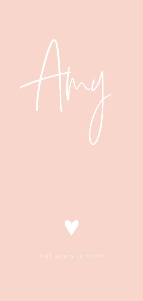 Hip zalmroze geboortekaartje met naam van je pasgeboren dochter in goudfolie. Dit hippe geboortekaartje heeft een minimalistische uitstraling en wordt erg bijzonder door het goudfolie. De naam van je pasgeboren meisje en het hartje valt gelijk op door de speelse typografie. De achtergrond heeft een zalmroze kleur. Deze kleur kan gemakkelijk worden aangepast in onze ontwerptool, zo maak je een eigen gepersonaliseerd geboortekaartje.