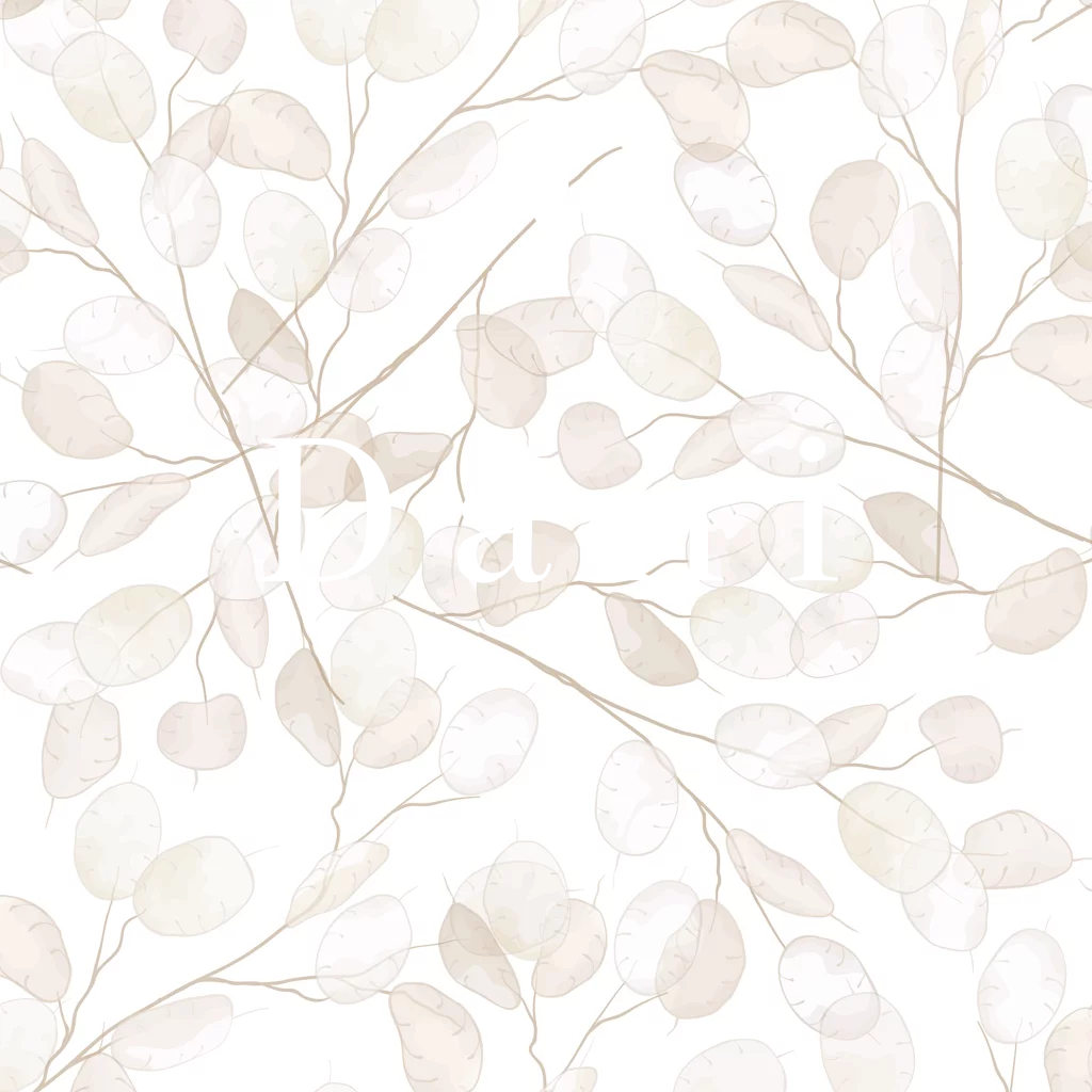 Rustig geboortekaartje met beige blaadjes en roséfolie hartje