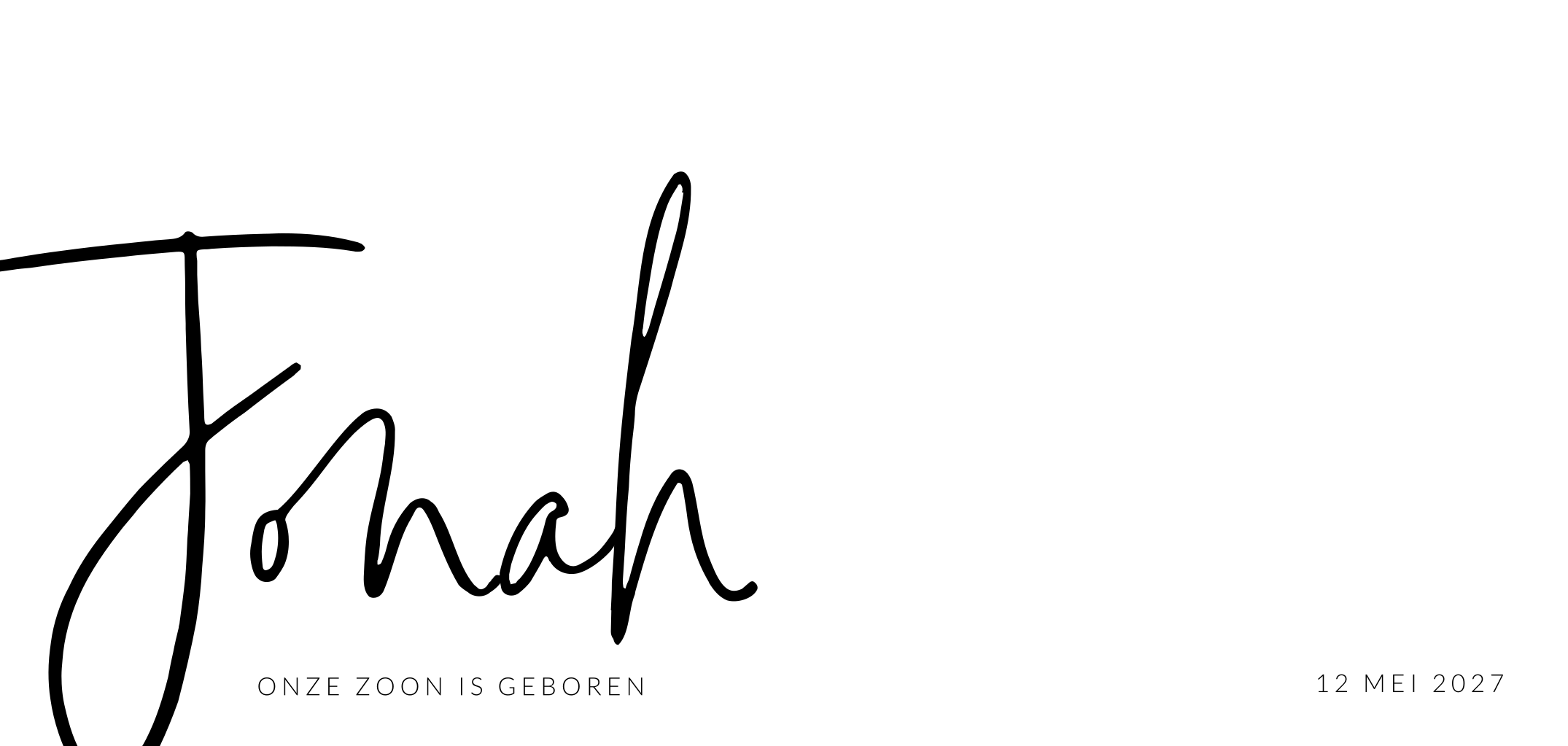 Minimalistisch geboortekaartje met de naam van je zoontje in een groot speels lettertype welke van de kaart afloopt. Dit strakke geboortekaartje is overwegend wit en heeft wat lieve hartjes die met goudfolie zijn gedrukt. Ze glimmen daardoor echt. Pas de kaart naar wens aan in onze handige editor.