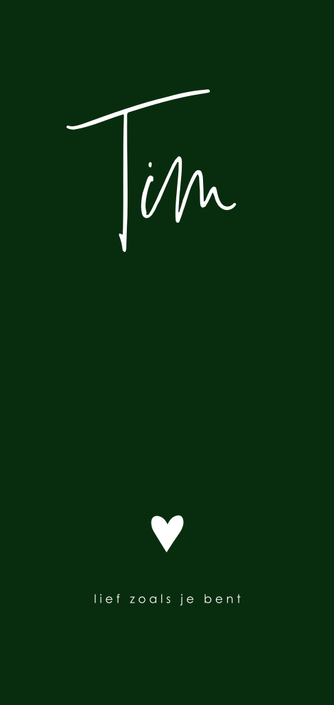 Zwanger van een jongen? Wat dacht je van dit strakke, donkergroene geboortekaartje met de naam in goudfolie. Dit stoere geboortekaartje is helemaal hot. Dat komt omdat de naam van je pasgeboren jongen in goudfolie wordt gedrukt. Hierdoor krijgt het simpele ontwerp een stijlvolle uitstraling. Het hartje op de kaart zorgt voor de finishing touch en voegt iets liefs toe aan het ontwerp. Liever een blauwe kaart? Dat kan natuurlijk ook. In de ontwerptool pas je de kaart gemakkelijk naar wens aan.