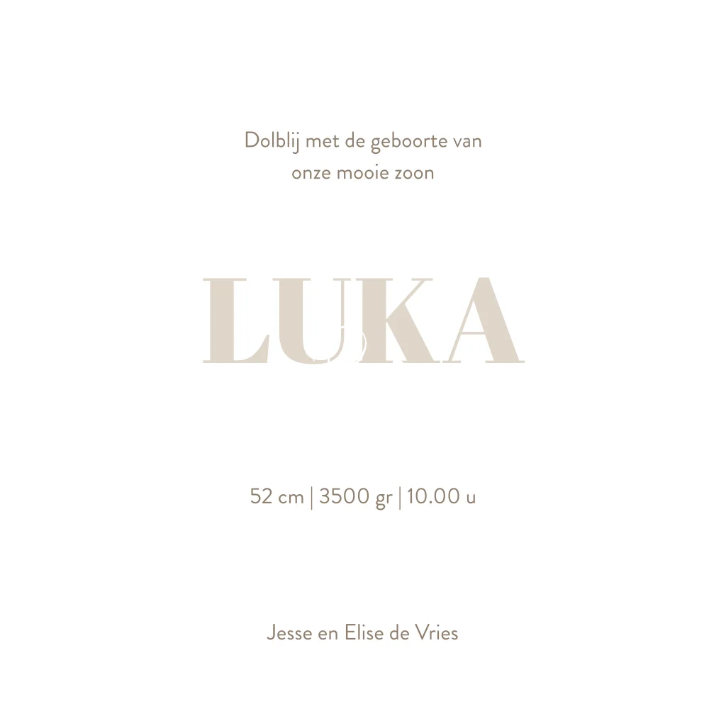 Taupe geboortekaartje jongen met bladeren en koperfolie hartjes