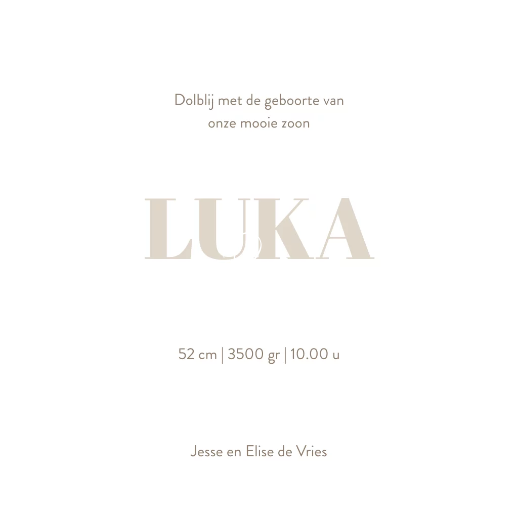 Taupe geboortekaartje jongen met bladeren en goudfolie hartjes