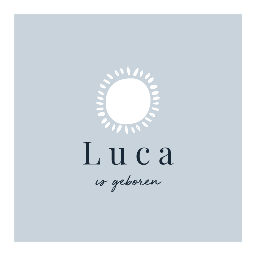 Zomers geboortekaartje met goudfolie zonnetje in het blauw. Verwacht jij je zoontje in de zomer? Dan is een geboortekaartje bijpassende bij het seizoen misschien een leuk idee. Dit chique geboortekaartje is super hip met het goudfolie zonnetje en de stijlvolle typografie. In de kaart is ruimte voor een mooi gedichtje, de datum en de geboortegegevens. Tip, je kunt dit kaartje helemaal naar wens aanpassen. Zo kun je de achtergrondkleur wijzigen of kiezen voor koperfolie in plaats van goudfolie.