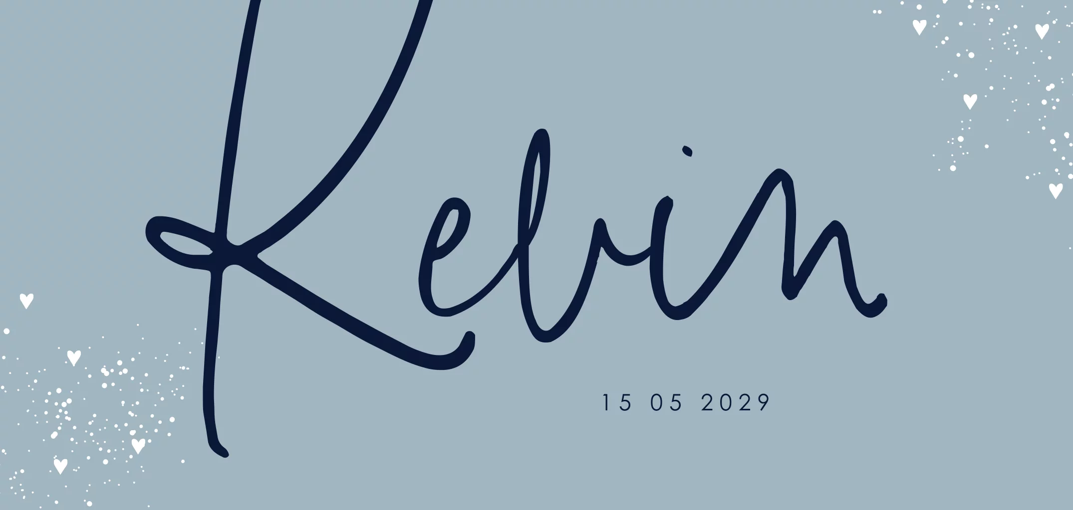 Op zoek naar een trendy en stijlvol geboortekaartje? Dan is dit lichtblauwe kaartje met sierlijke typografie perfect. Door zijn simpele ontwerp heeft het kaartje een chique en toch moderne uitstraling. De kaart is versierd met witte spetters en hartjes. Blauw niet je kleur? Je kunt dit kaartje gemakkelijk omzetten naar iedere kleur die je wilt.