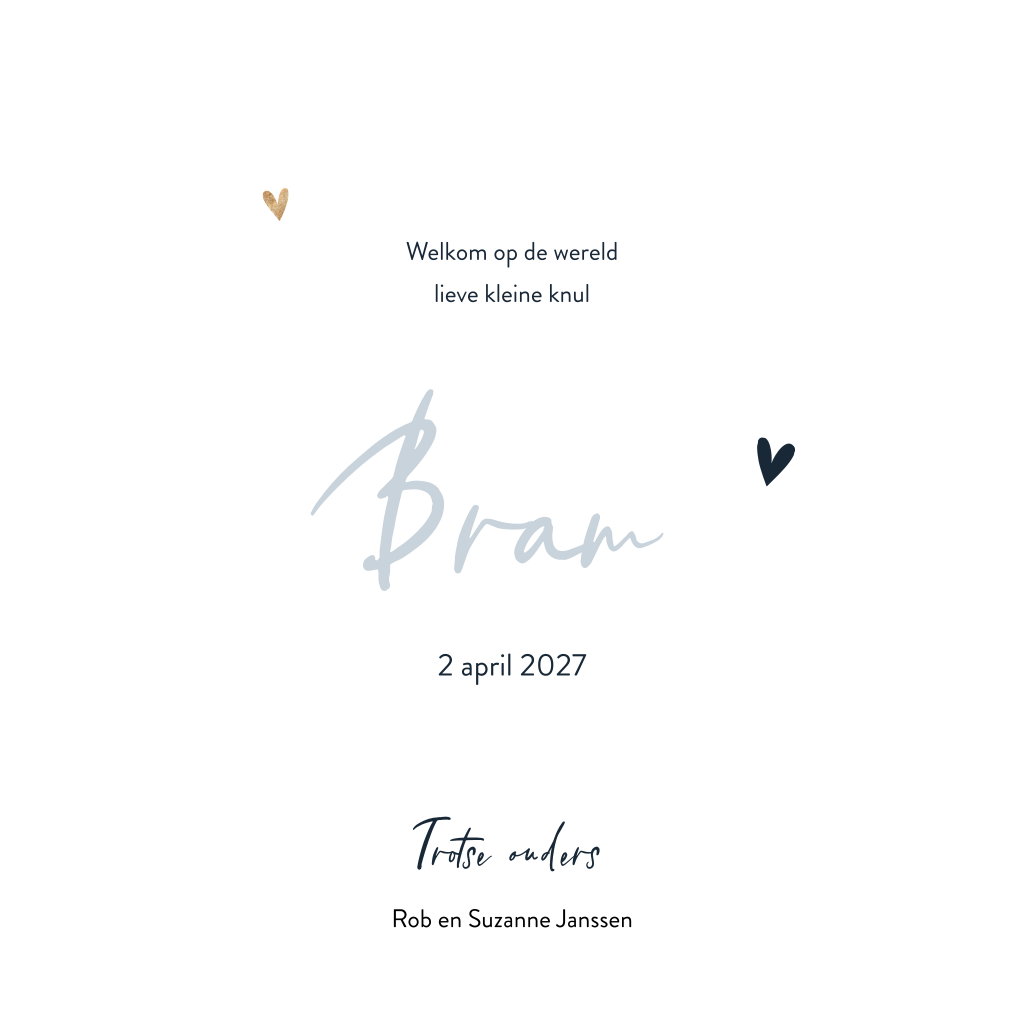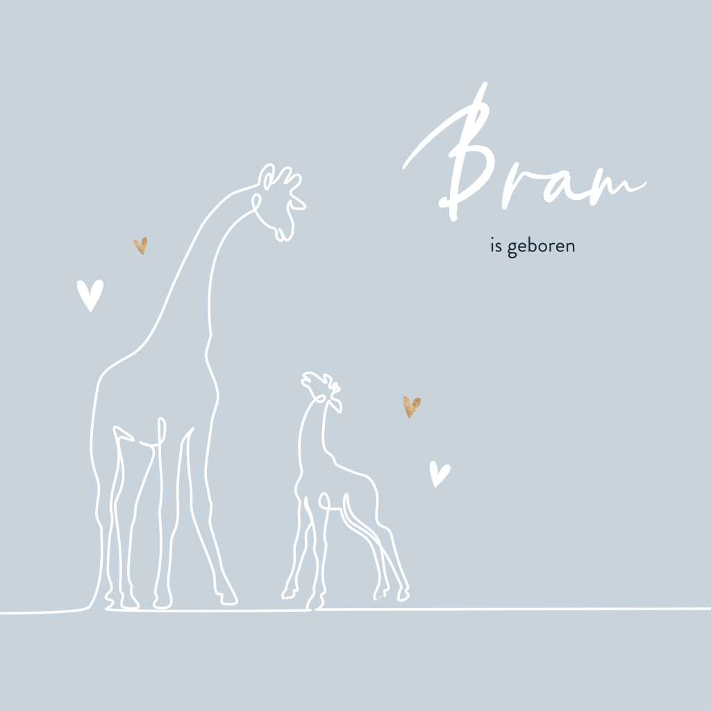 Dit lieve geboortekaartje met een lijntekening van giraffen is perfect om de geboorte van jullie zoontje aan te kondigen. De hartjes in combinatie met de lijntekening maken er een speels en hip geheel van. Je kunt de kleuren en lettertypes gemakkelijk aanpassen in onze handige ontwerptool.