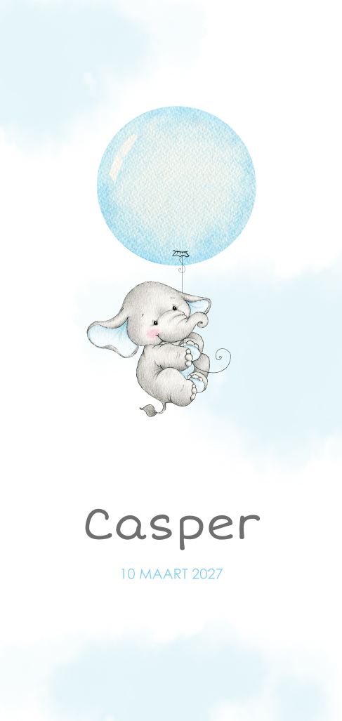 Geboortekaartje jongen met olifantje aan ballon