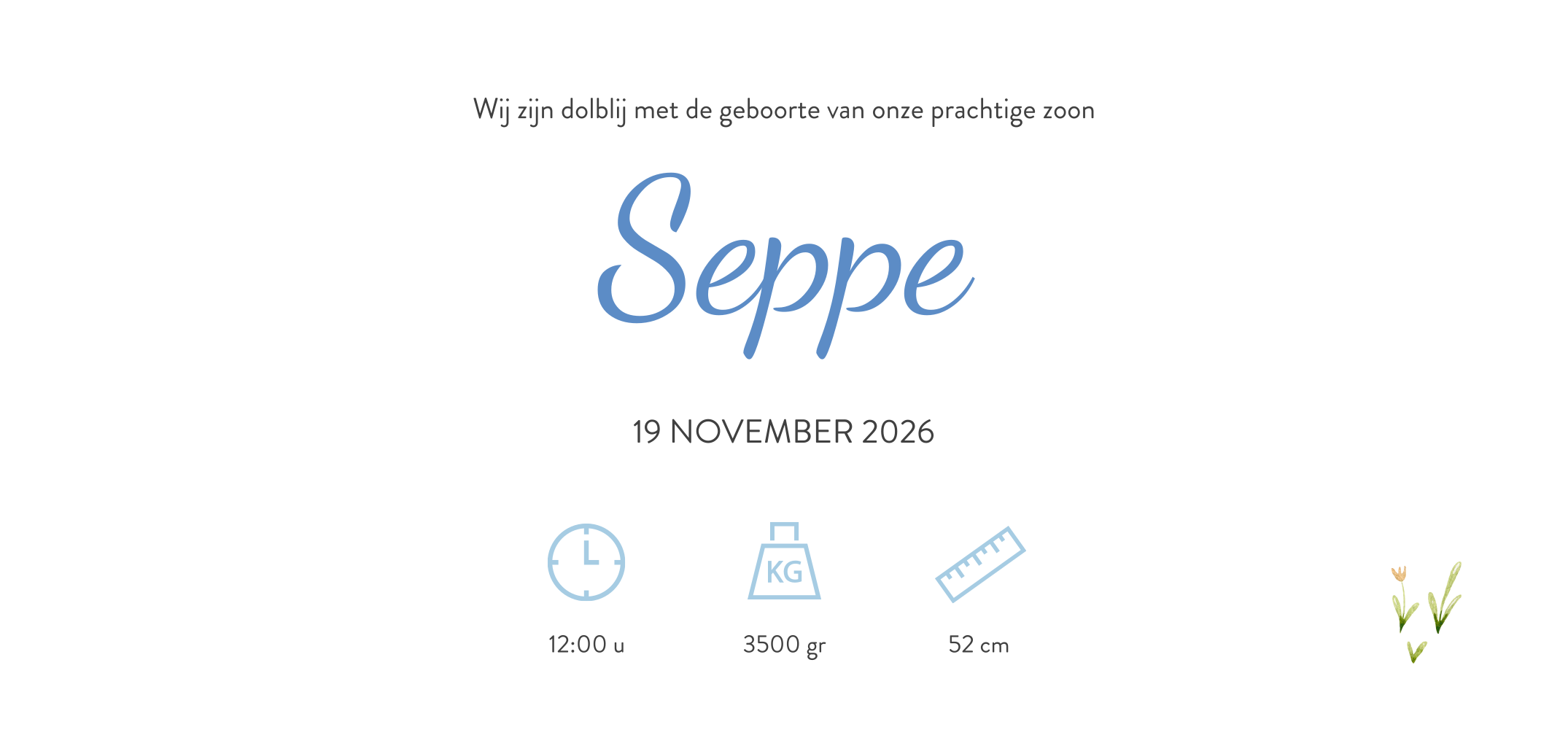Vrolijk geboortekaartje met slinger van dieren en blauwe hartjes. Op zoek naar een super vrolijk geboortekaartje voor een jongen? Kies dan voor dit langwerpige vrolijke geboortekaartje met een slinger van blije dieren. Dit schattige kaartje heeft mooie illustraties op de voorzijde, geschilderd met waterverf. In de slinger zie je onder andere een wasbeer, een vosje en een beer die hand in hand huppelen. In de kaart keren de wasbeer en beer terug. Op de linkerzijde kun je een leuke gedichtje plaatsen.