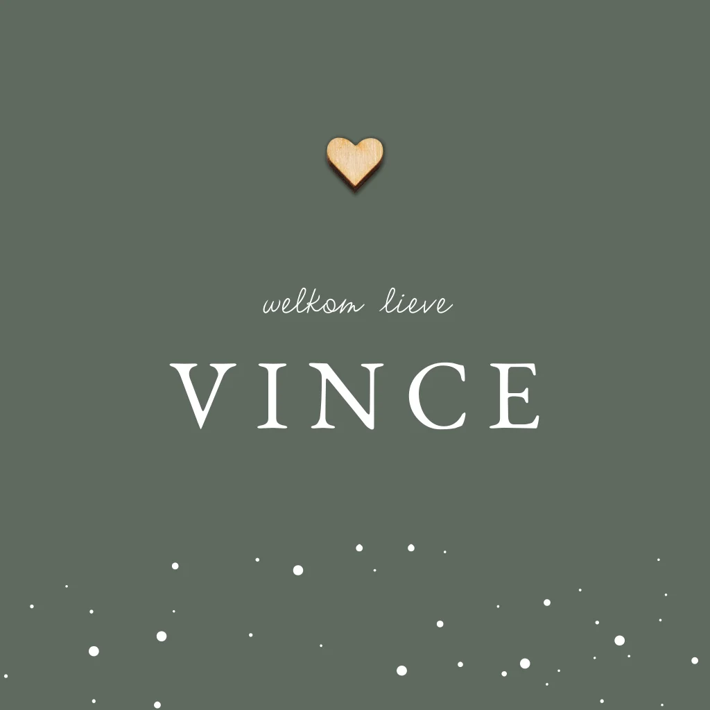 Donkergroen geboortekaartje jongen met stipjes en hartje