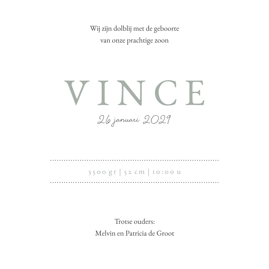 Dit klassieke, donkergroene geboortekaartje heeft weinig nodig om super schattig te zijn. De kaart is versierd met witte stipjes en een écht houten hartje. In de kaart is ruimte voor een gedichtje en de overige gegevens.