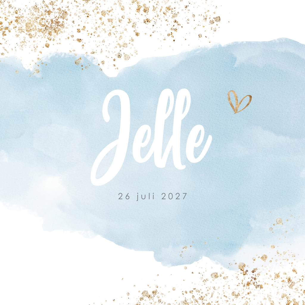Geboortekaartje jongen blauwe waterverf met gouden hartje