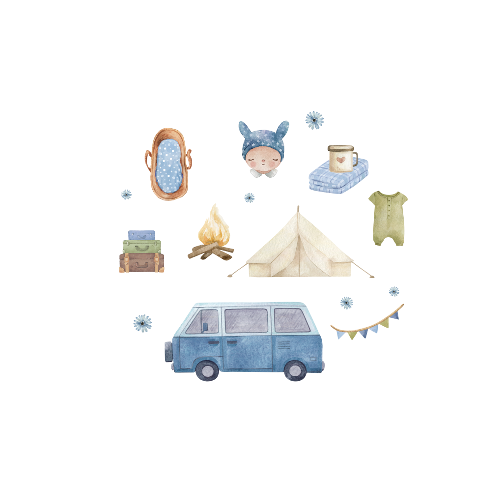 Houden jullie van kamperen? Dan past dit zomerse geboortekaartje met blauw VW busje en tent perfect bij de geboorte van jullie zoon! Op de voorkant staan allerlei lieve waterverf kampeer tekeningetjes, zoals een tent, kampvuur en warme choco met marshmallows. De naam wordt gedrukt met goudfolie.