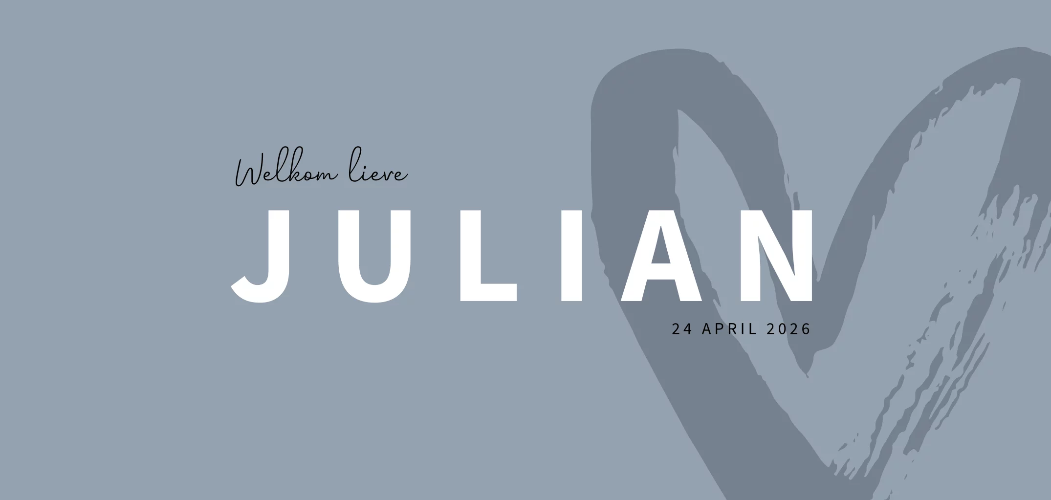 Grafisch geboortekaartje voor een jongen met groot blauw hart achter de naam. Met stoere typografie staat de naam van je pasgeboren zoontje voorop de kaart. Op de achterzijde is ruimte voor alle informatie. Hier keert het hart ook weer terug. Je kunt het kaartje personaliseren door een andere kleur toe te voegen of door een ander lettertype te kiezen.