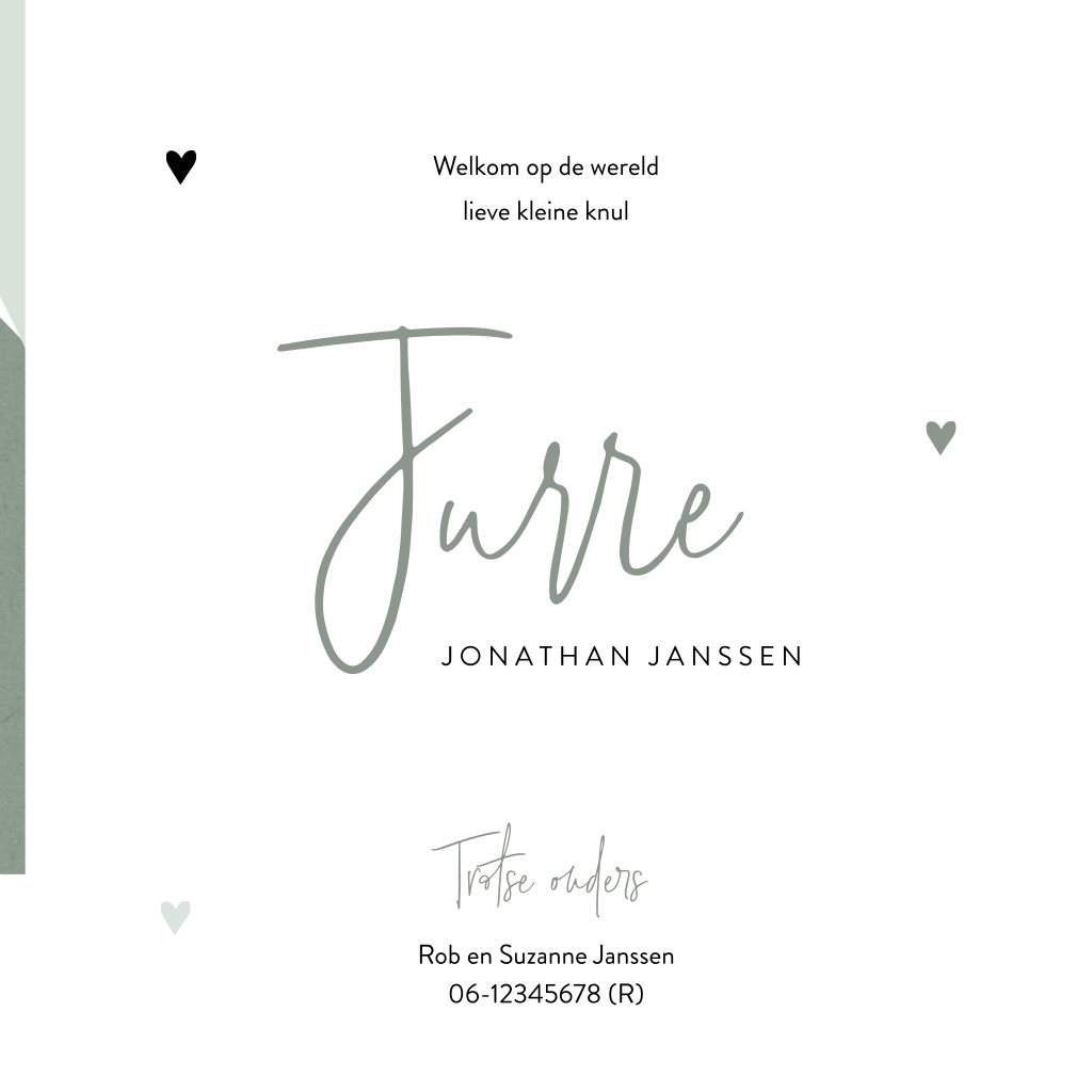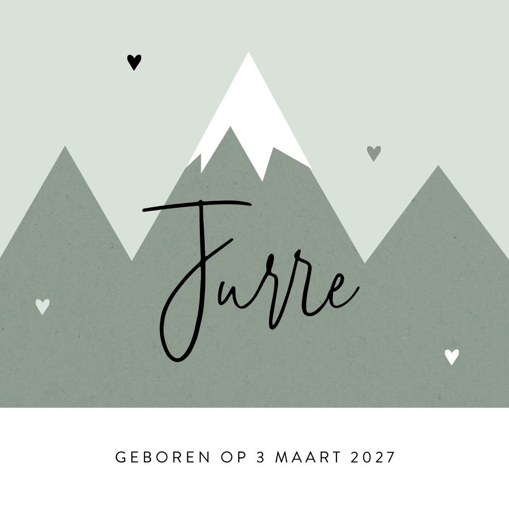 Besneeuwde bergtoppen, sierlijke typografie en kleine hartjes. Dit stoere, grafische geboortekaartje is perfect om de komst van je zoontje mee aan te kondigen. Plaats een eigen foto in het fotokader aan de binnenzijde voor een persoonlijke finishing touch. Pas het ontwerp verder aan in onze ontwerptool.