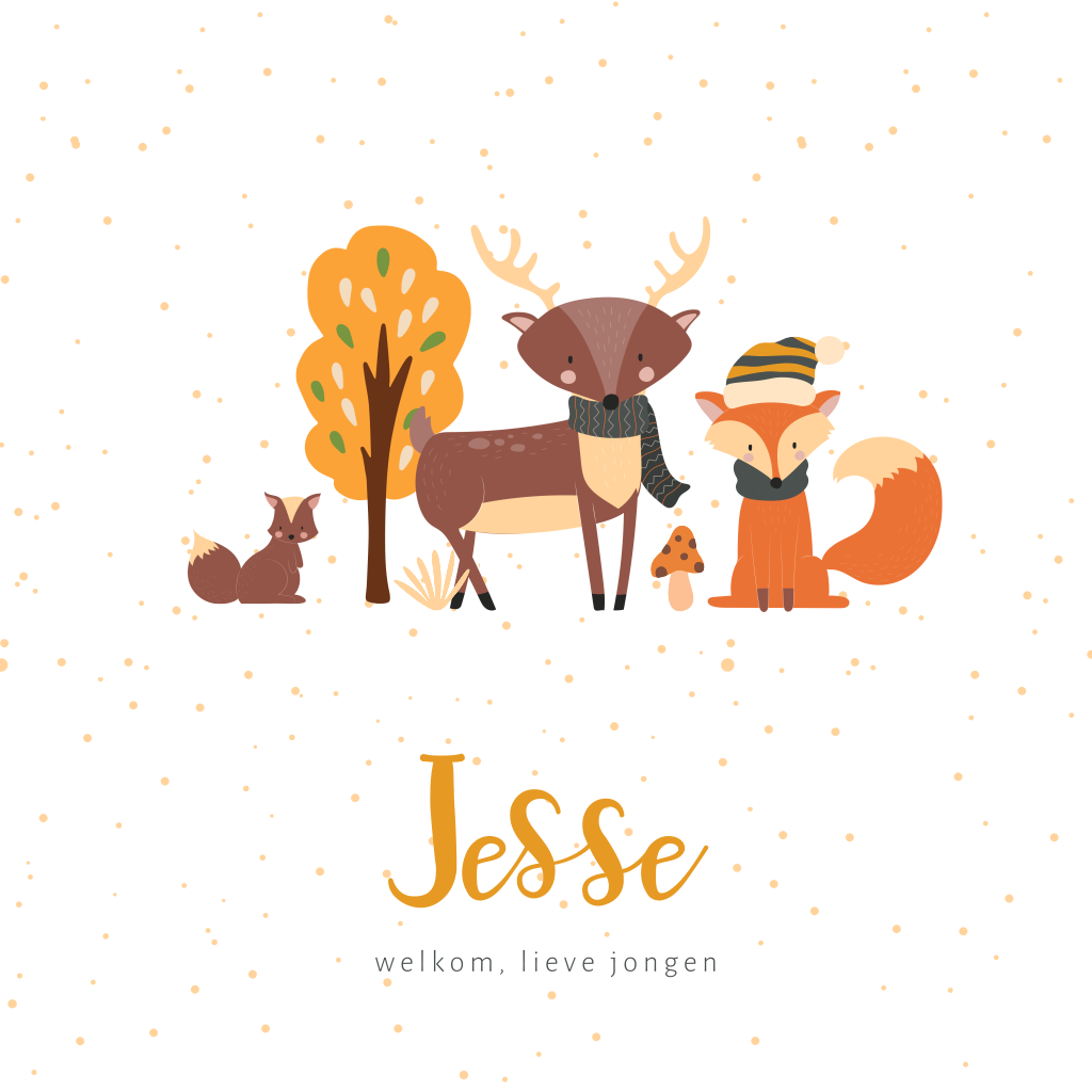 Herfst geboortekaartje met hert, vos en eekhoorn