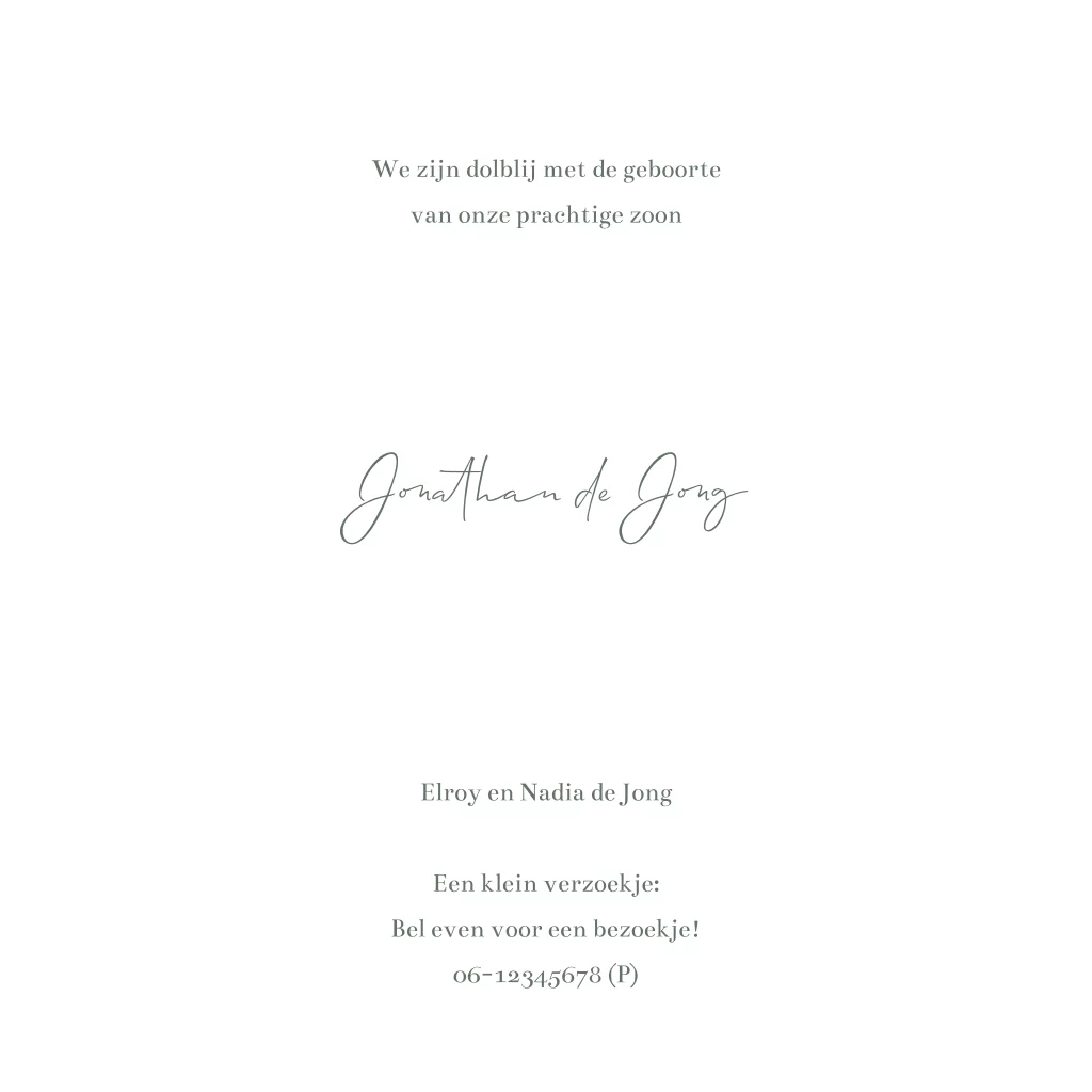 Op zoek naar een leuk geboortekaartje voor je zoontje? Ga voor dit lieve silhouet ontwerp met een grote boom, een klein jongetje en een lieve hond. De naam van je zoontje komt in glimmende, gouden letters voorop en ook de vlindertjes worden afgedrukt in goudfolie. De kleuren van de illustraties en teksten zijn eenvoudig zelf aan te passen in onze ontwerptool. Voeg een eigen foto toe aan de binnenzijde om het kaartje te personaliseren en bestel een proefdruk.