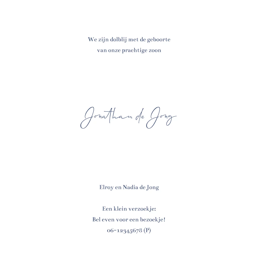 Op zoek naar een leuk geboortekaartje voor je zoontje? Ga voor dit lieve silhouet ontwerp met een grote boom, een klein jongetje en een lieve kat. De naam van je zoontje komen in glimmende, goudfolie letters voorop en ook de vlindertjes worden afgedrukt in folie. De kleuren van de illustraties en teksten zijn eenvoudig zelf aan te passen in onze ontwerptool. Voeg een eigen foto toe aan de binnenzijde om het kaartje te personaliseren en bestel een proefdruk.