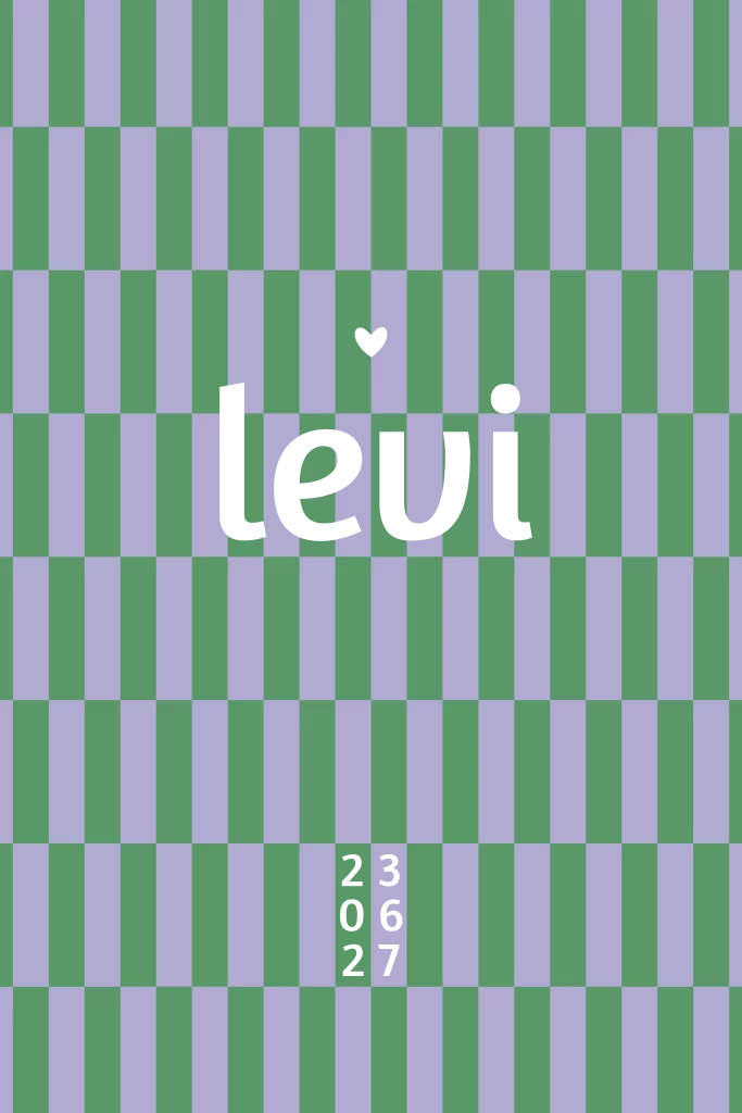 Ben je op zoek naar een trendy geboortekaartje? Deze geboortekaart met een opvallend ruitjespatroon in groen en lila is perfect voor moderne ouders! De naam van je kindje staat centraal in goudfolie evenals de geboortedatum en het hartje. Personaliseer de tekst en kleuren eenvoudig met onze gebruiksvriendelijke editor om het helemaal naar jouw smaak te maken.