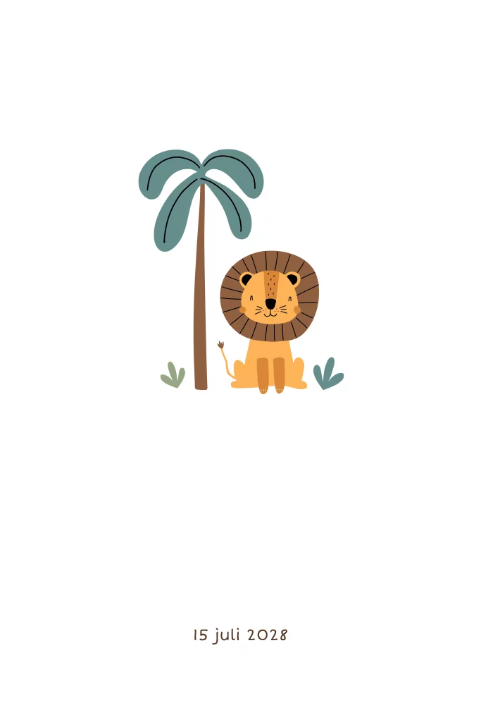 Geboortekaartje met leeuw en palmboom