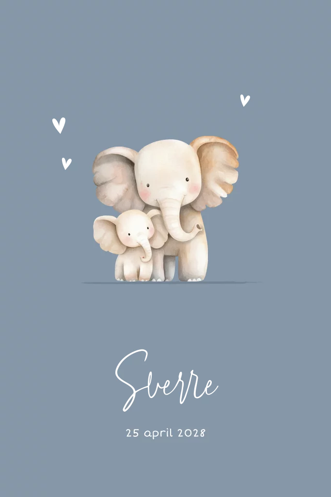 Lief geboortekaartje met twee olifantjes en zilverfolie