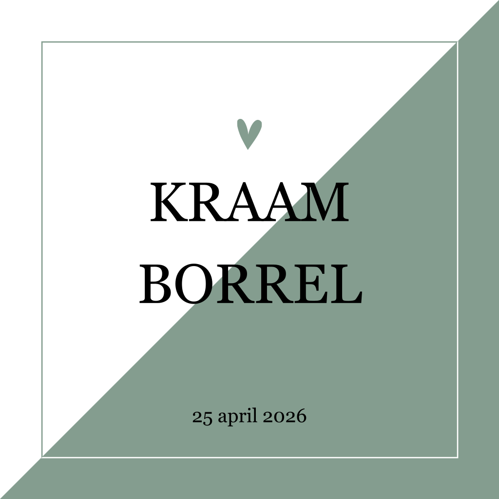 Dit kraamkaartje heeft grijsgroene geometrische vlakken en een lief hartje. Met dit kaartje nodig je alle gasten uit om de geboorte van je zoon te vieren. Pas de kleuren naar wens aan om het kaartje nog persoonlijker te maken. Dit ontwerp is helemaal in dezelfde stijl als dit geboortekaartje: "Geometrisch geboortekaartje met groen vlak".