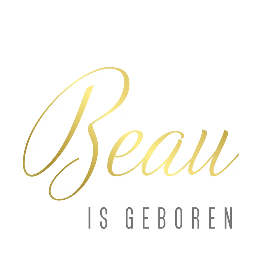 Vierkant geboortelabel met naam in goudfolie. Maak het ontwerp van je geboortekaartje extra bijzonder door een apart naamlabel op de voorzijde te bevestigen.