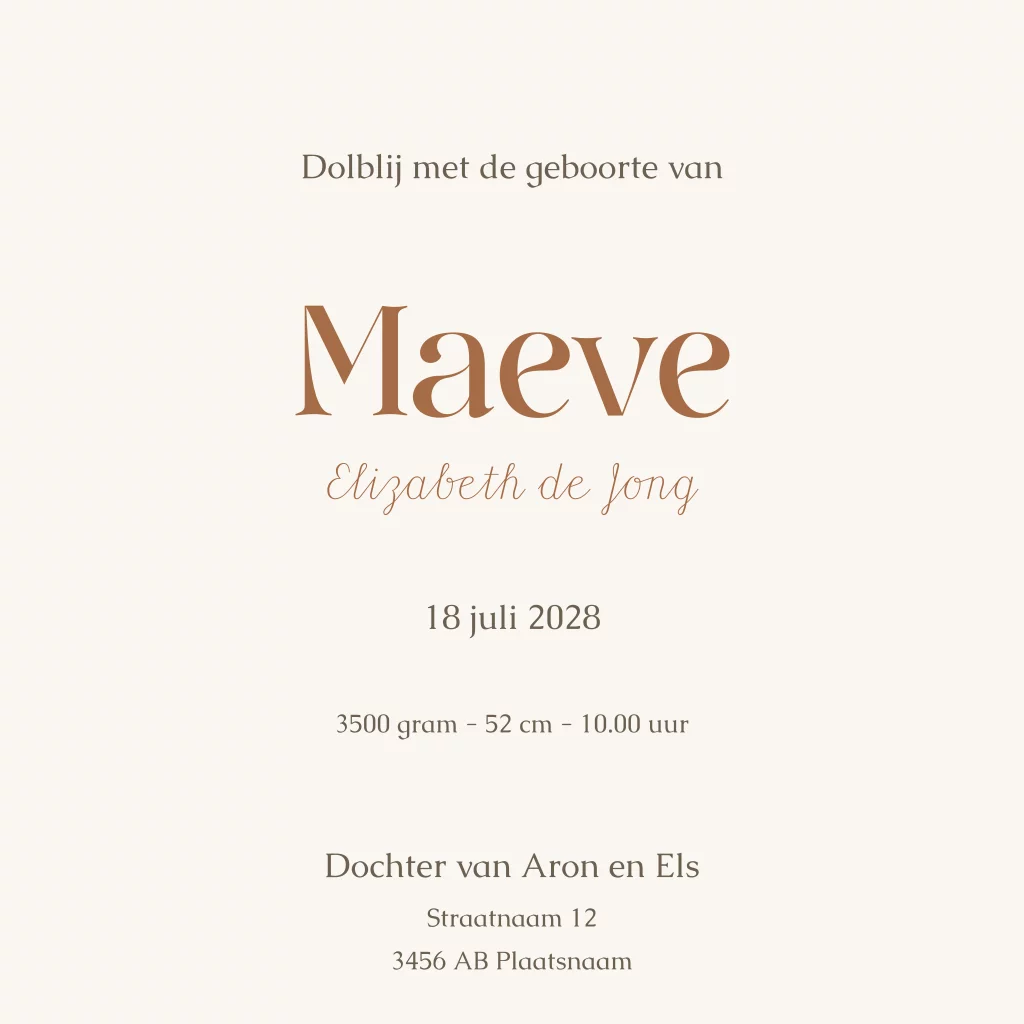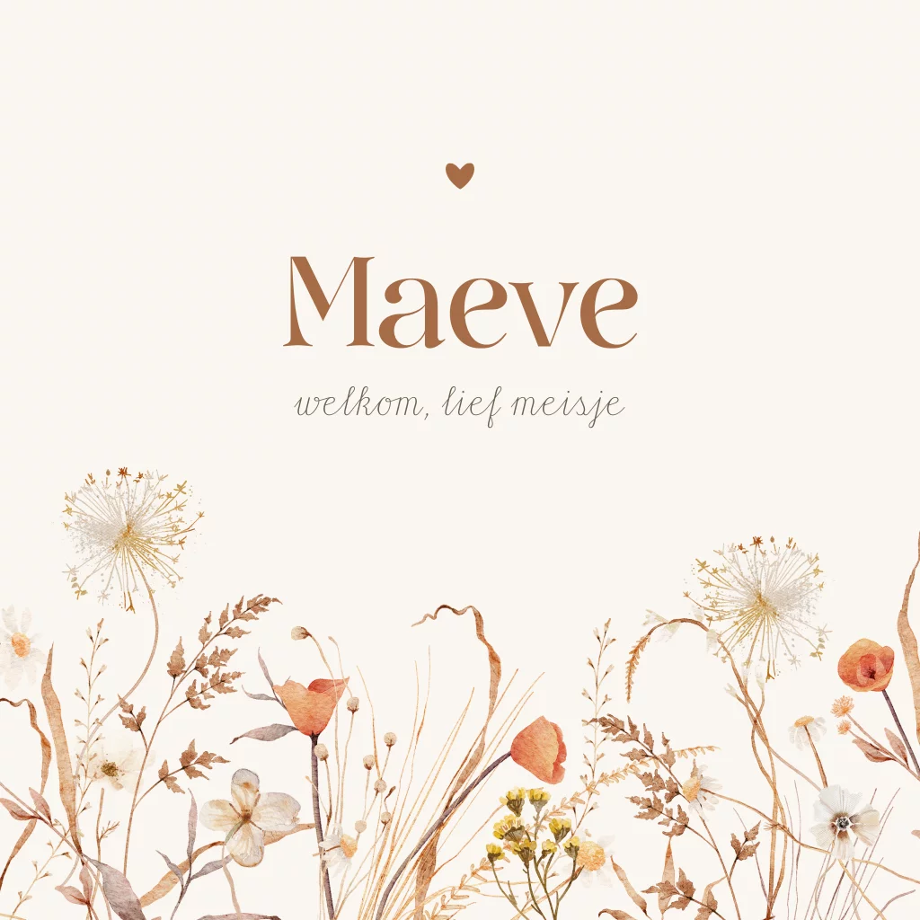 Wordt jouw lieve dochtertje deze herfst geboren? Dan is dit geboortekaartje met herfst bloemen prachtig. Klaprozen en andere veldbloemen in zachte herfstkleuren. Met de editor kun je de kaart aanpassen met eigen teksten.