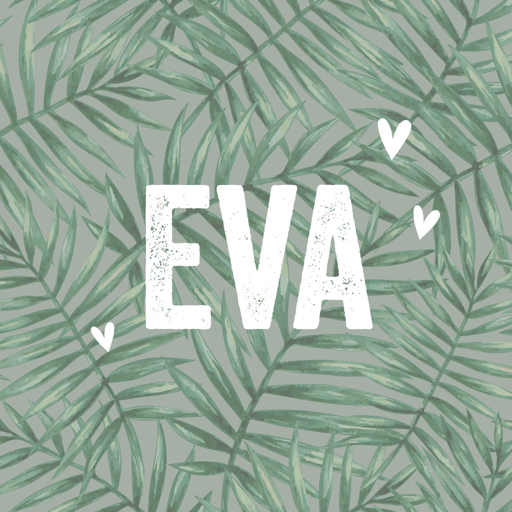 Botanisch geboortekaartje voor een meisje met bladeren en naam. Stoer geboortekaartje met achtergrond met botanische bladeren en goudfolie hartjes rondom de naam van je dochter. Ben je helemaal fan van deze jungle stijl maar wil je toch een beetje een grafische uitstraling? Dan is dit geboortekaartje perfect voor jouw dochtertje.