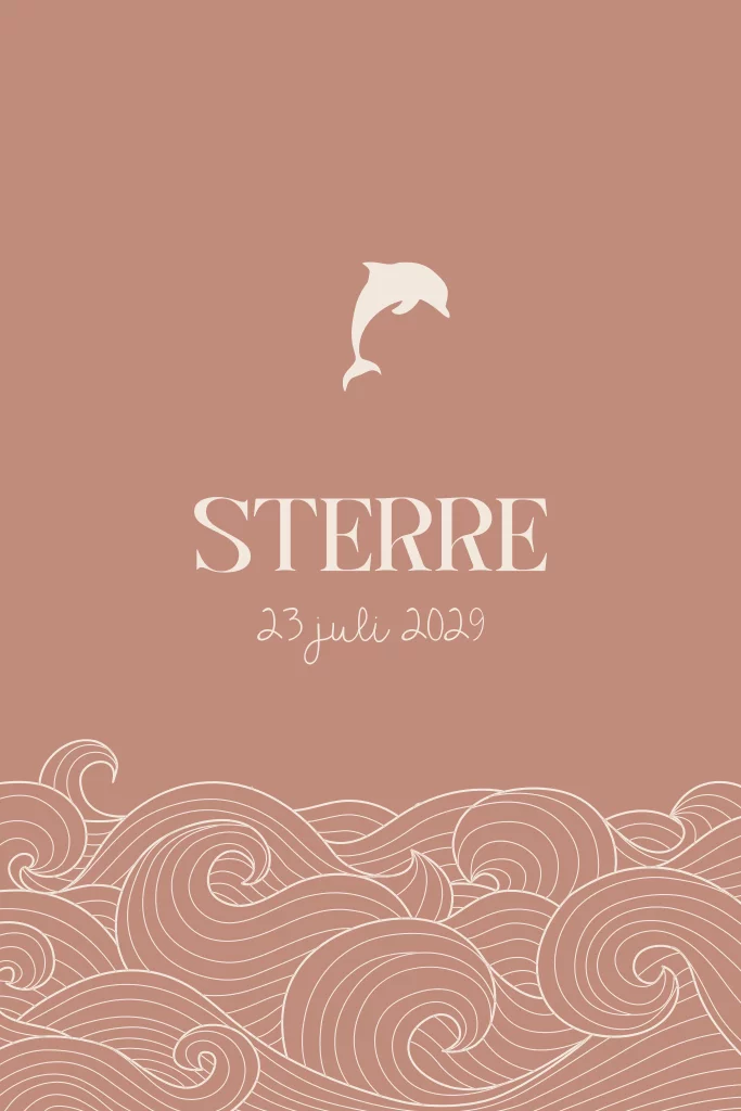 Wat een speelse dolfijn is dit die zo hoog uit het water springt! Dit ontwerp is een geweldige keuze om de geboorte van je dochter aan te kondigen. Pas het eenvoudig aan met de editor en bestel een drukproef, dan kun je de kaart in het echt zien.