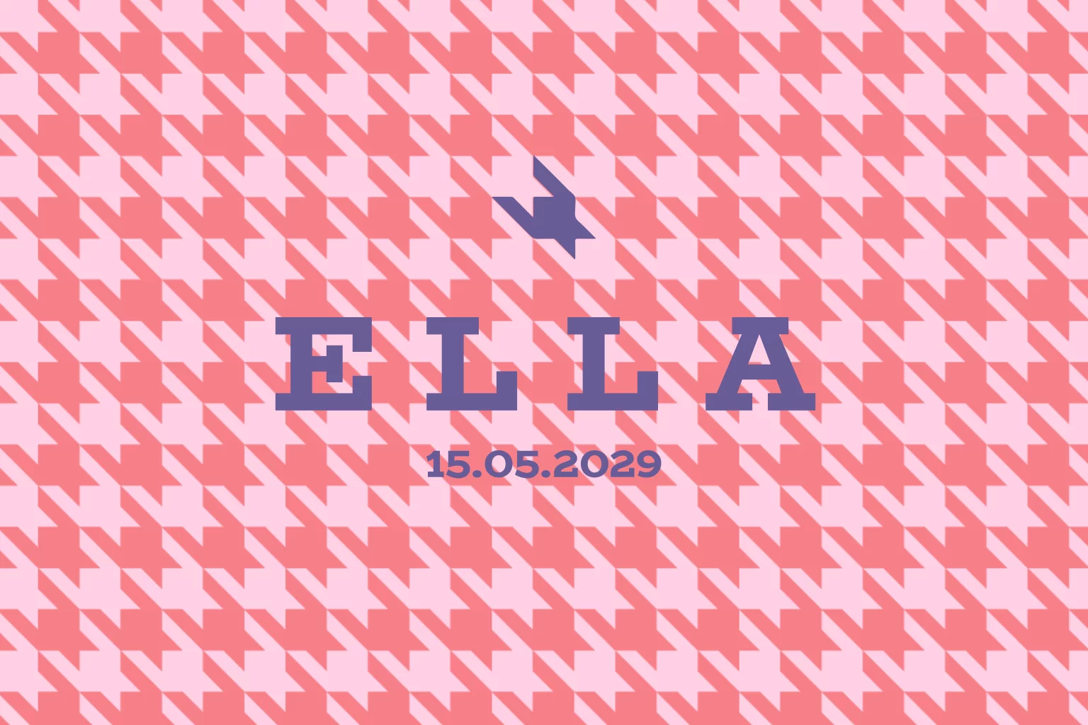 Bent je op zoek naar een klassiek geboortekaartje voor een meisje? Dan is dit ontwerp met een hip Pied-de-poule ruitpatroon in roze tinten wellicht precies wat je zoekt. Het tweekleurige, gebroken ruitpatroon met verlengde hoeken, dat ook veel voorkomt in de mode, geeft een stijlvolle uitstraling. Je kunt de kleuren zelf aanpassen naar wens.