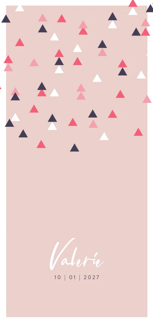 Geometrisch geboortekaartje meisje met roze driehoekjes