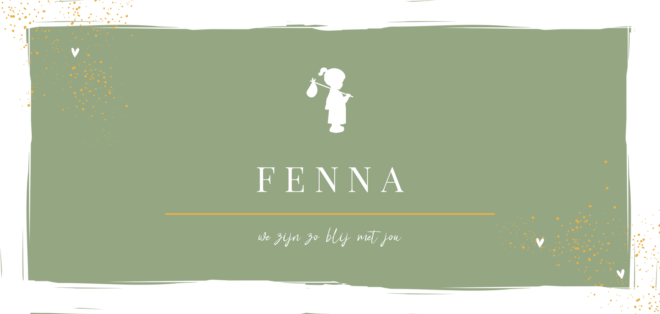 Groen geboortekaartje met silhouet meisje en okergele spetters